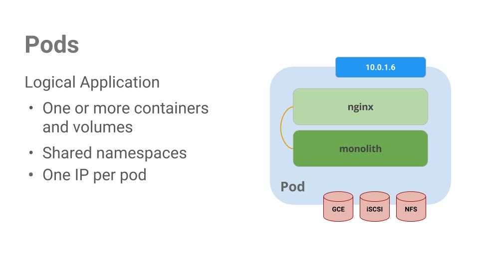 In this example there is a pod that contains the monolith and nginx containers.